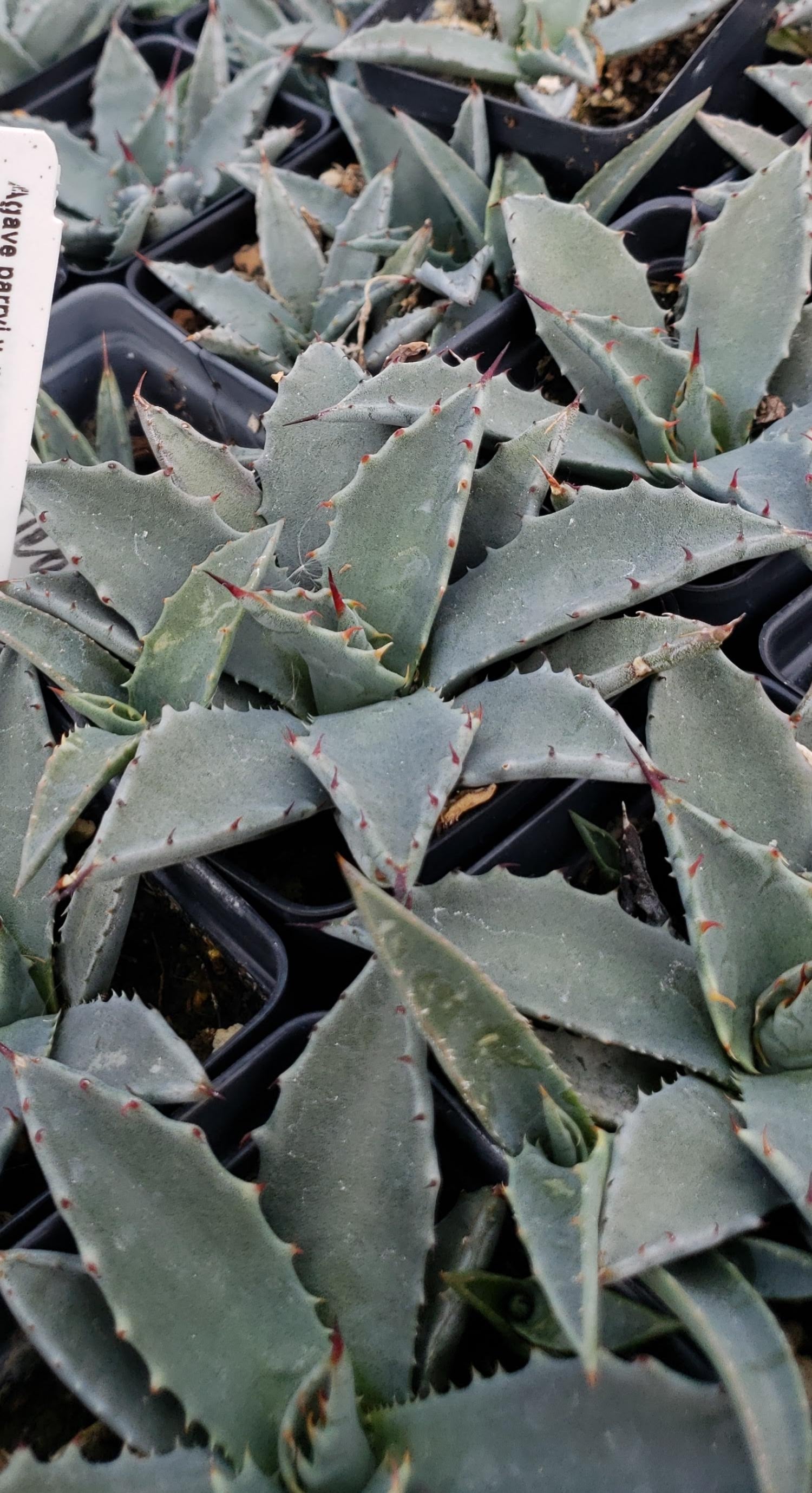A stunning, rare, deep blue hybrid of two winter hardy Agaves. Cold hardy to Zone 5. It's clean, solitary form rivals other neomexicana forms. Incredible, impressed leaf patterns better than on most agaves. 15" high x 20" wide. Very polite in the garden. Minimal production of pups. Comes in a 2.5-inch pot.
