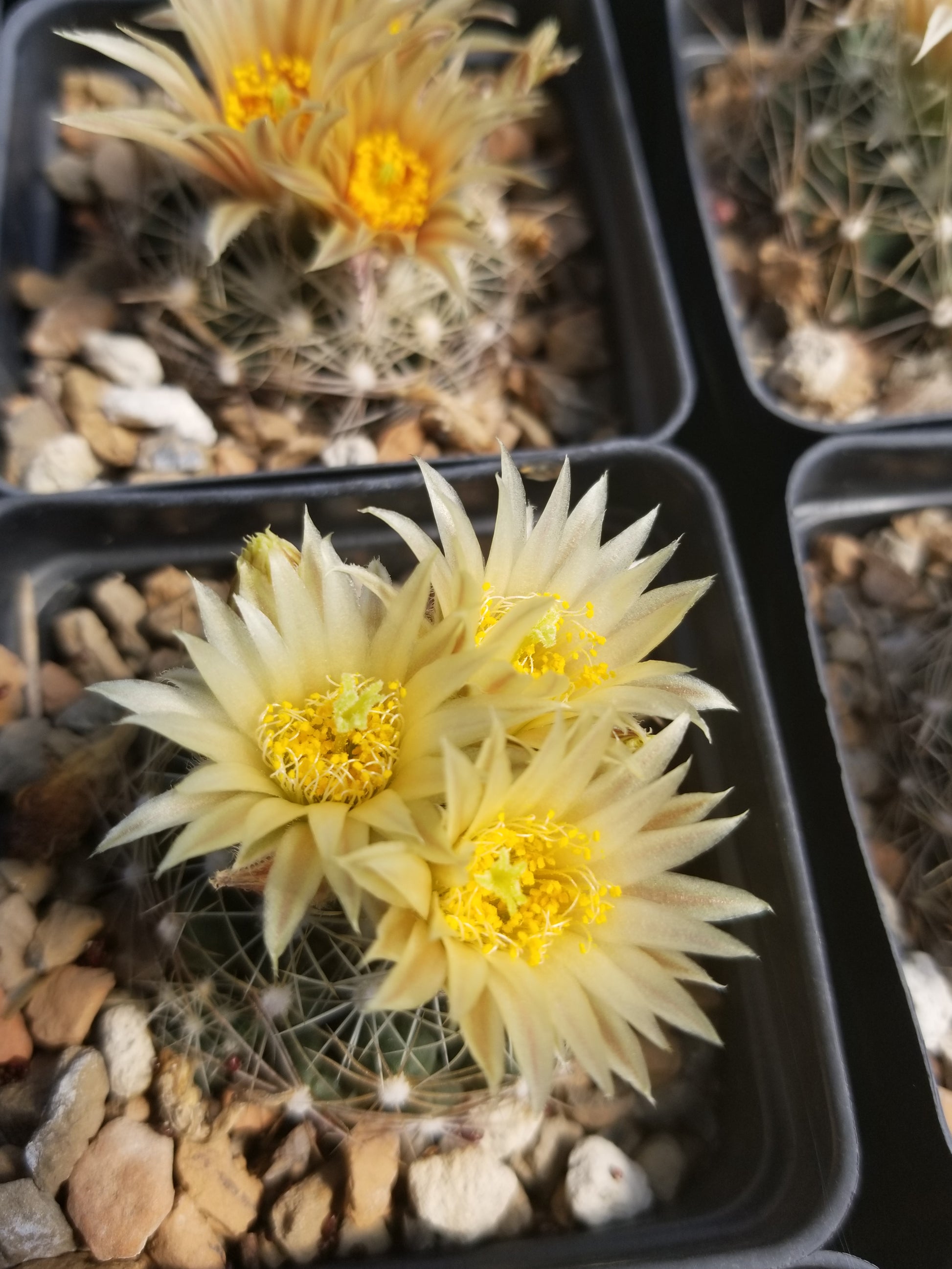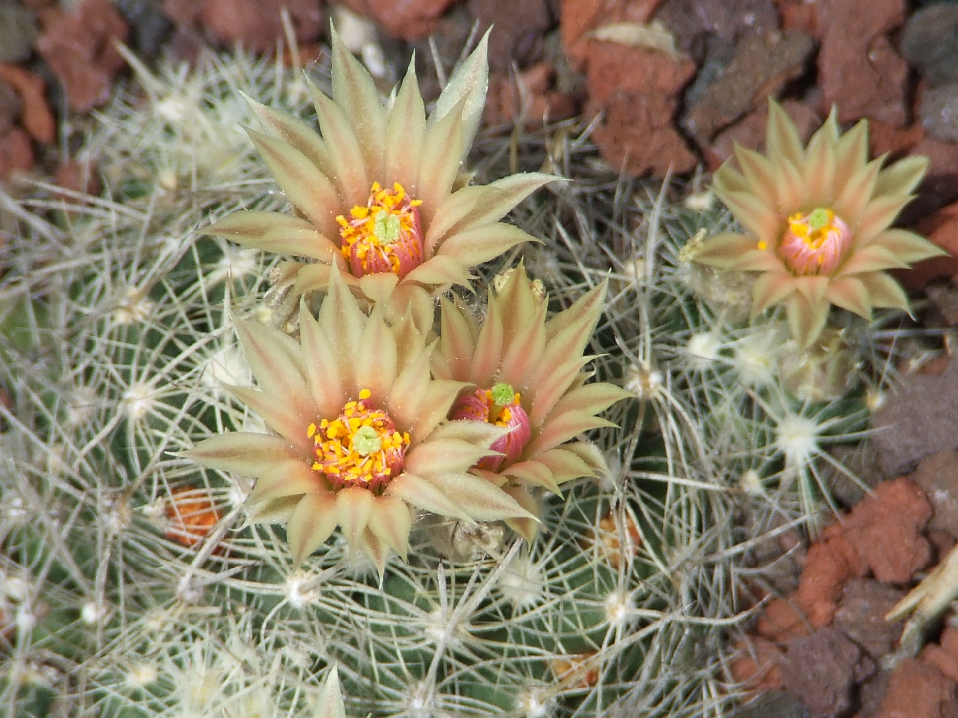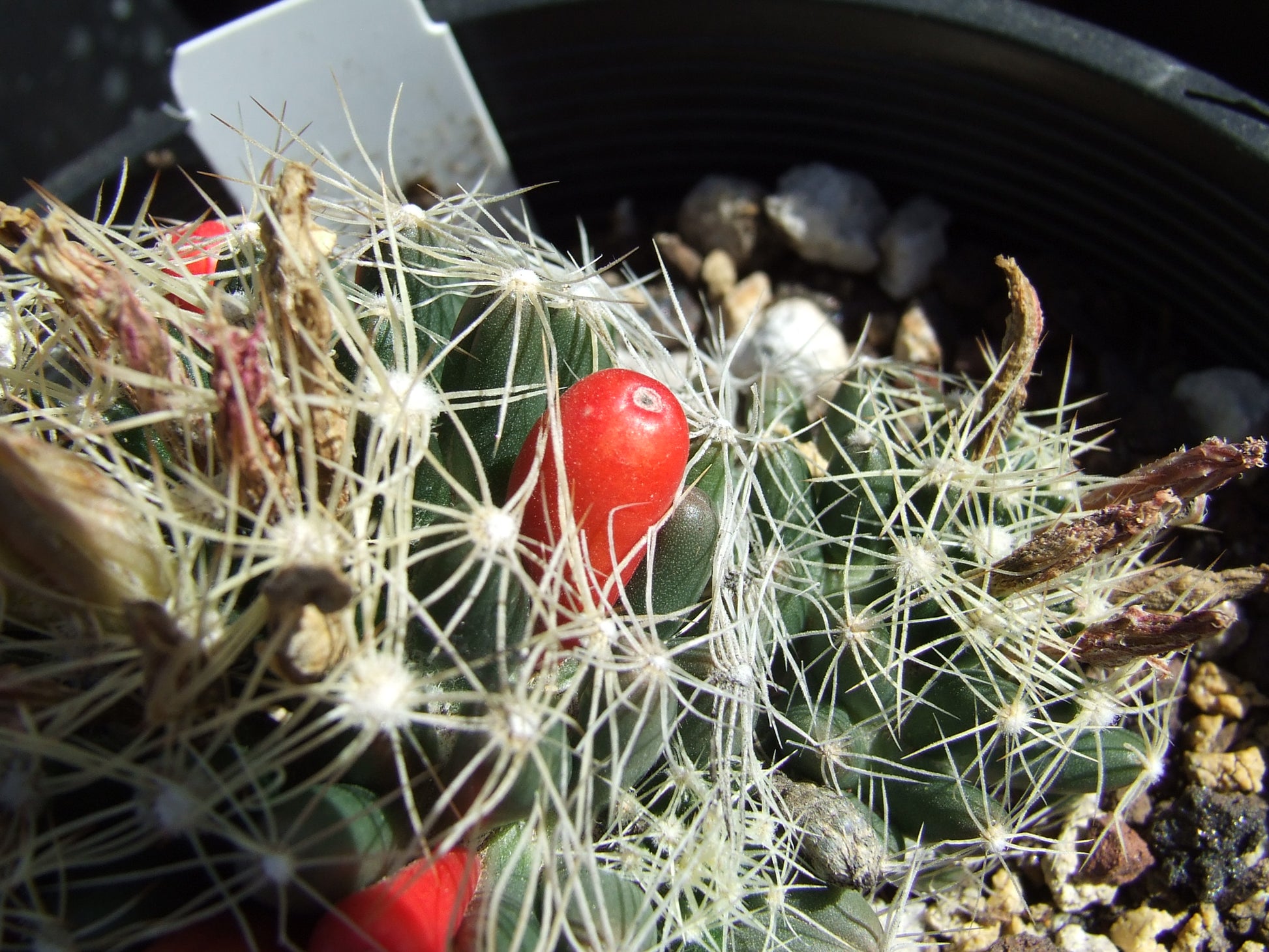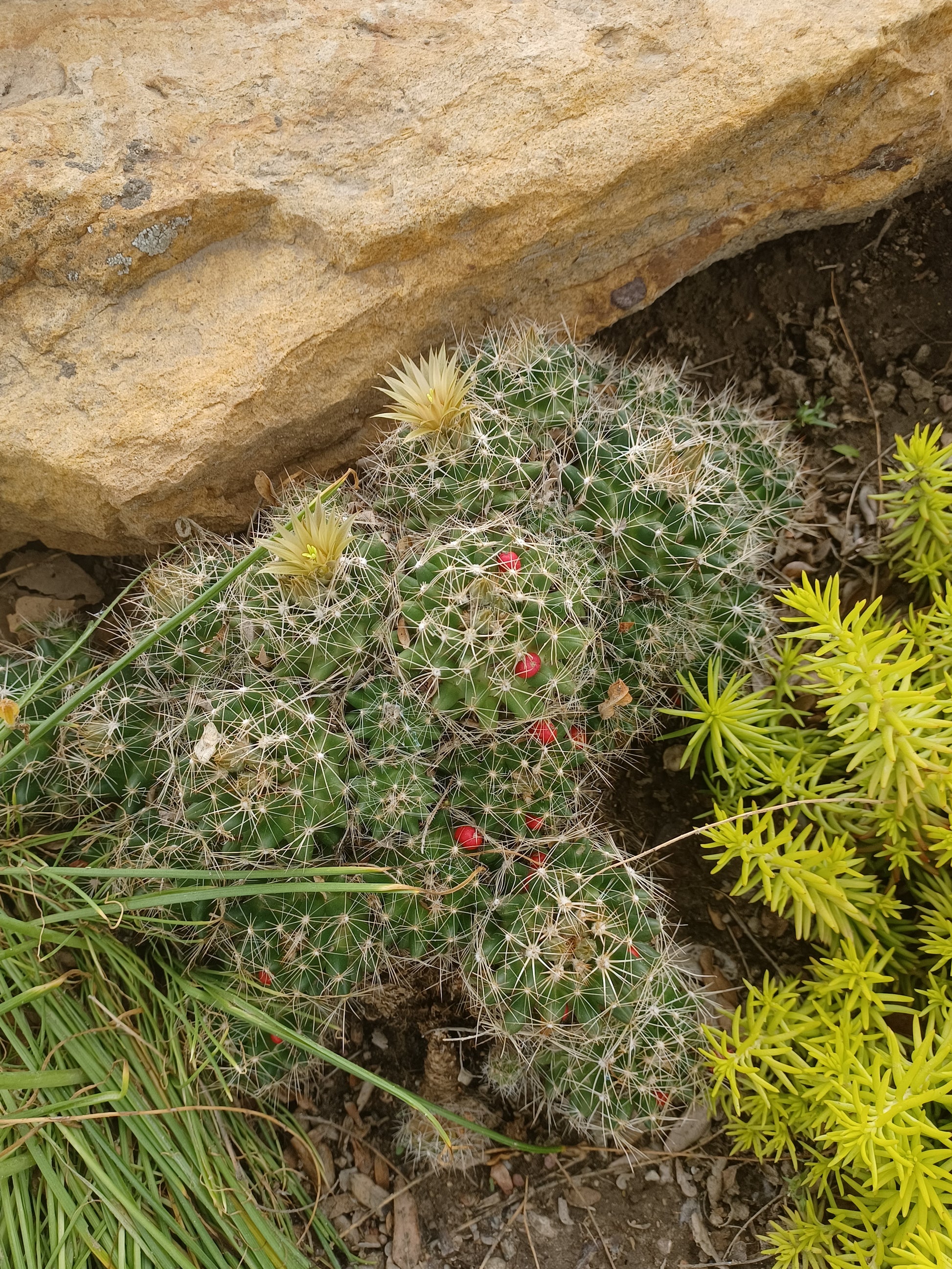 One of the most cold-hardy Escobaria, native to the great plains. Caramel-colored flowers in May followed by abundant red berries that persist all winter. 3"H X 8"W. Thrives between zones 3-10. Sold in 2.5"-pots.