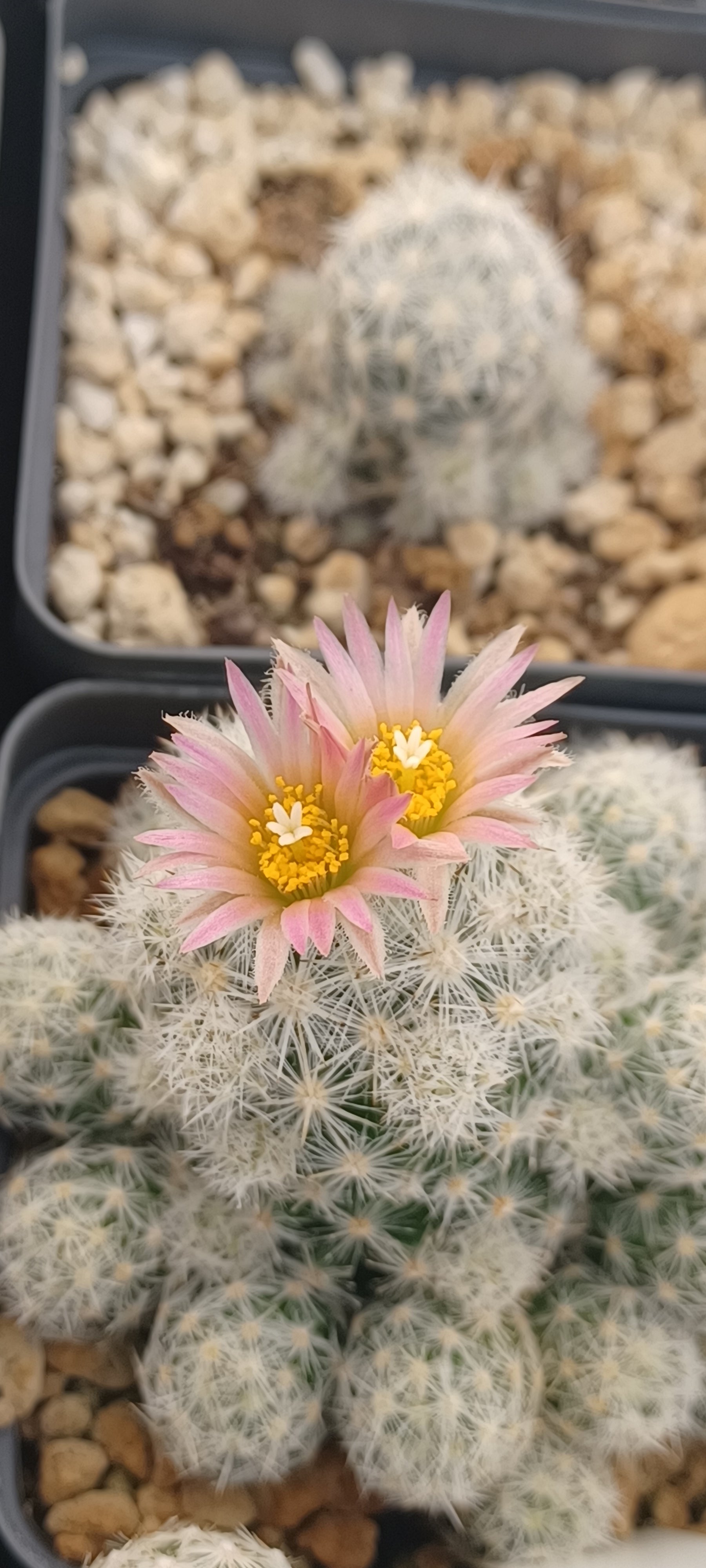 Our favorite little trough plant. One of the rarest plants in the collection. Plants are about 3 inches high and 8 inches in width after many years. Zone 4. Spines are held tighter than the similar species Escobaria sneedii and smaller as well. Pale pink to coral flowers. Sold in 2.5 inch pots. This can be grown as a windowsill houseplant also! This clone is somewhat more robust than ES001.